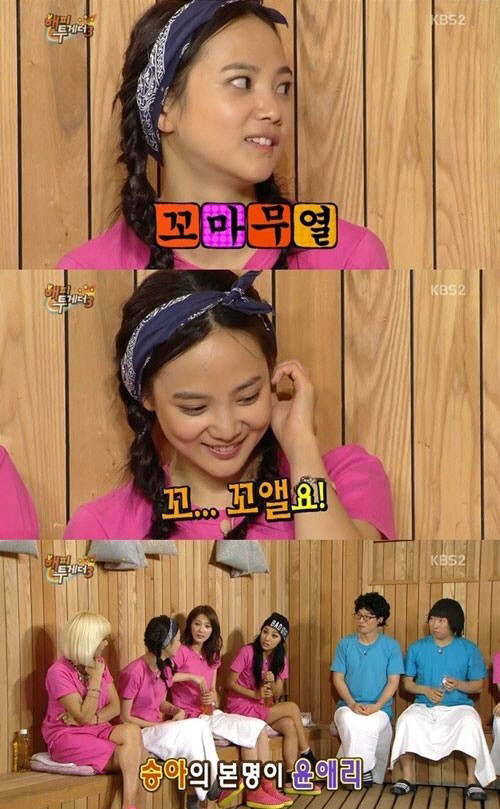 당시 윤승아는 '연인 김무열과의 애칭은 뭐냐'는 물음에 "오빠를 '꼬무'라고 부른다. '꼬무'는 '꼬마무열'이라는 뜻"이라며 닭살 애칭을 털어놨다.