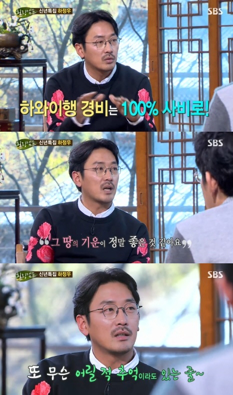 이에 하정우는 "하와이는 어머니 같은 곳"이라며 "나에게 팔베게를 해주고 쉬게 해주는 곳"이라고 너스레를 떨었다.