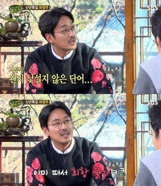 이날 방송에서 영화 속 웃음 코드와 관련한 이야기 하던 하정우는 "굉장히 사랑한 대사가 있다"라고 말했다. 하정우는 그의 연출 데뷔작인 영화 '롤러코스터' 속 대사를 소개하며 "사무장을 불러서 '여기서 뭐하는거냐 우시장이냐 마장동이냐?'라며 따지는 장면이었다"라며, "그 말이 되게 웃기다고 생각했는데 아무도 안웃더라"라고 민망해했다.