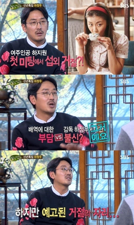 하정우는 "하지원을 위해 영화의 진행 상황이 담긴 잡지를 제작해 보내줬다. 당시 하지원이 대본을 받고 한 달 이후 '만나자'고 했다. 주위에선 '지원 씨가 거절 하려고 예의를 차리려 만나자 한 것'이라고 했다"며 "미팅 자리에서 하지원이 '어떻게 영화 찍으실 거예요?'라고 묻더라. 생각하다가 '고민 중이라 현재로선 모르겠다'고 했다"고 밝혔다.