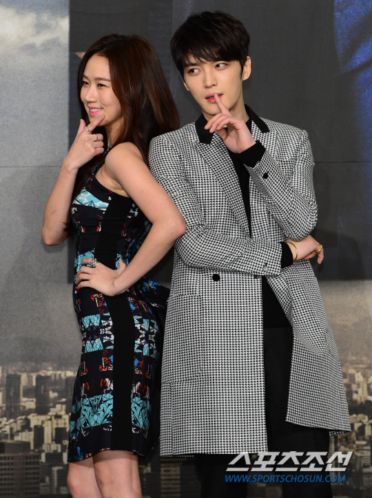 6일 오후 서울 강남구 역삼동 리츠칼튼호텔에서 KBS2 드라마 '스파이' 제작발표회가 열렸다. 고성희와 김재중이 포토타임에서 포즈를 취하고 있다.