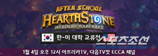 한국 대학 e스포츠 동아리연합회 'ECCA'와 북미 대학 e스포츠 리그 'CSL'이 공동으로 주최한 이번 '애프터스쿨 하스스톤: 한-미 대학 교류전'은 첫 국제 대학 교류전으로 큰 관심을 받았다. 한국을 대표해 연세대학교, 고려대학교, 한국과학기술원(카이스트), 성균관대학교, 부경대학교, 서울과학기술대학교가 참가했고, 미국 대표로 프린스턴 대학교, 조지아 공과대학교, UC샌디에고, UC어바인, 서던캘리포니아 대학교, 워싱턴 대학교가 참여, 총 12개 학교가 치열한 경기를 펼쳤다. 여기에 많은 선수들이 각국의 여러 '하스스톤' 대회에 출전하는 실력이 있는 선수들이어서 국내 뿐만 아니라 해외에서도 많은 관심을 받았다. 경기는 북미 트위치 TV와 한국의 아프리카 TV ECCA채널과 다음팟TV ECCA채널을 통해 생중계됐다.