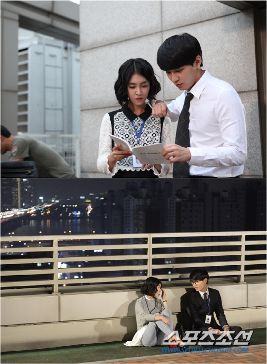 7일 열음엔터테인먼트는 직장인 멘토링 드라마 '미스하이에나'를 통해 환상의 호흡을 자랑하는 박민지, 도지한이 함께 드라마 대본을 들고 연습 중인 사진과 옥상에 앉아 서로 마주보고 담소를 나누는 장면이 담긴 사진을 공개했다.