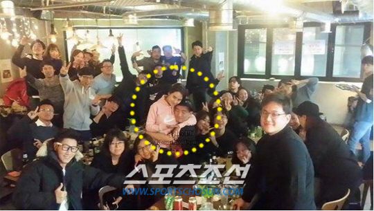 해당 사진은 지난해 열린 SBS 연예대상 시상식 이후 런닝맨 팀이 뒤풀이하고 있는 모습으로, 유재석, 이광수, 지석진 등 '런닝맨' 멤버들의 모습이 담겨있다.