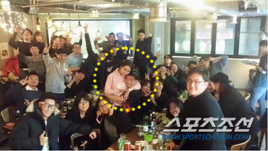 해당 사진은 지난해 열린 SBS 연예대상 시상식 이후 런닝맨 팀이 뒤풀이하고 있는 모습으로, 유재석, 이광수, 지석진 등 '런닝맨' 멤버들의 모습이 담겨있다.