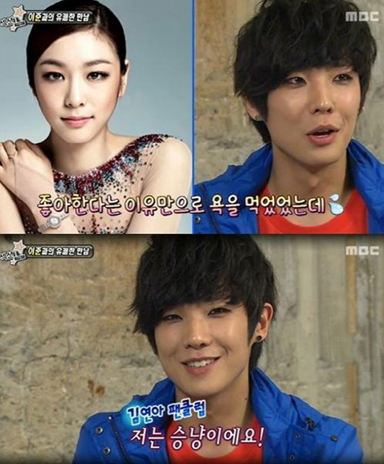 당시 이준은 "예전에 김연아 선수를 좋아한다는 이유만으로 욕을 먹었다. 그런데 좋아하고 존경할 수 있는 것 아니냐"고 말했다.