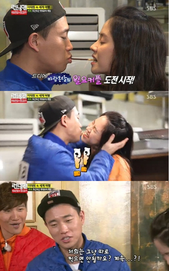이에 개리는 "한 방에 하자 지효야"라며 덤덤하게 임했지만 "막상 하려니까 이상하다"며 부끄러운 표정을 지어보였다.
