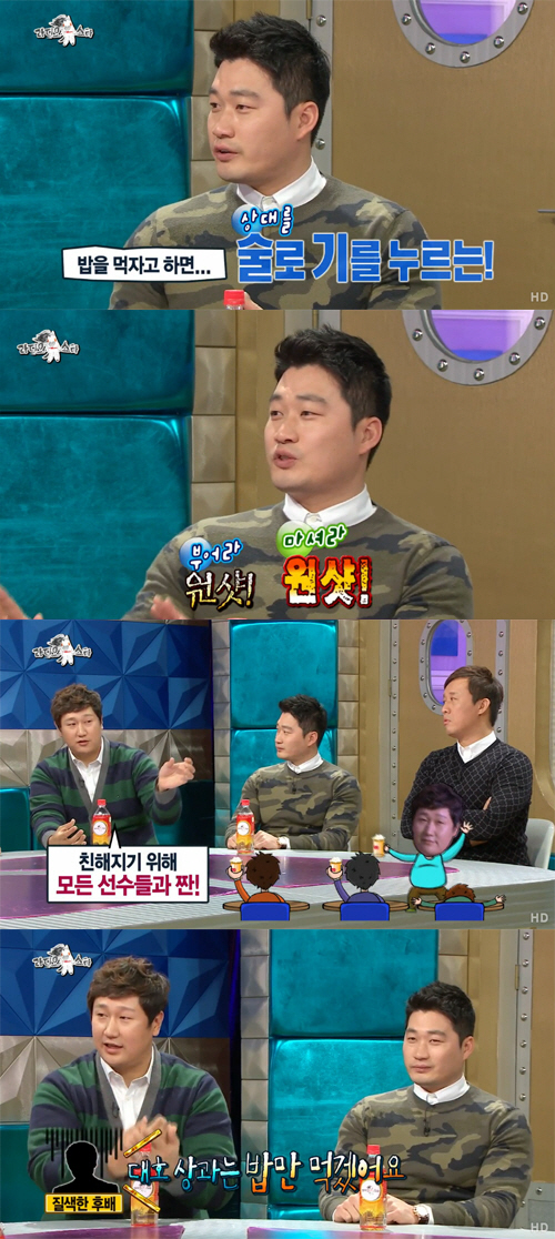 이날 MC들은 "일본 선수들과 친교는 어떻게 하느냐"고 물었고, 오승환은 "일본 선수들이 밥 먹자고 하면 술로 기를 죽인다"고 답했다.
