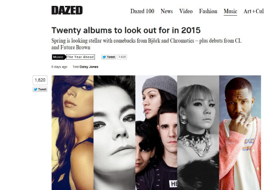 2NE1의 씨엘이 발표하게 될 미국 데뷔 앨범이 영국 유명 매거진 데이즈드 앤 컨퓨즈드가 선정한 '2015년 가장 기대되는 앨범 20(Twenty albums to look out for in 2015)'에 포함됐다.