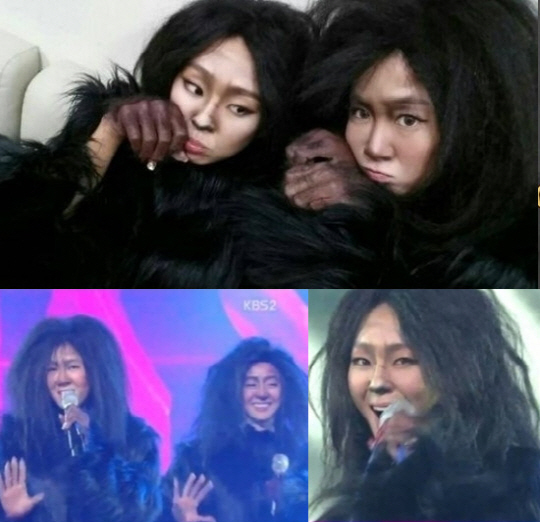 특히 털옷을 입고 더벅머리를 한 채 무대에 오른 씨스타는 얼굴에는 숯검정을 묻히는 등 완벽하게 유인원으로 변신해 보는 이들을 깜짝 놀라게 했다.