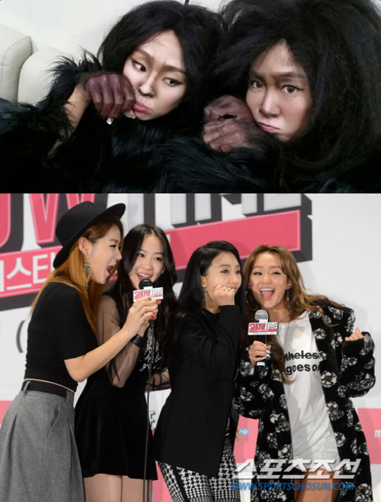 특히 털옷을 입고 더벅머리를 한 채 무대에 오른 씨스타는 얼굴에는 숯검정을 묻히는 등 완벽하게 유인원으로 변신해 보는 이들을 깜짝 놀라게 했다.