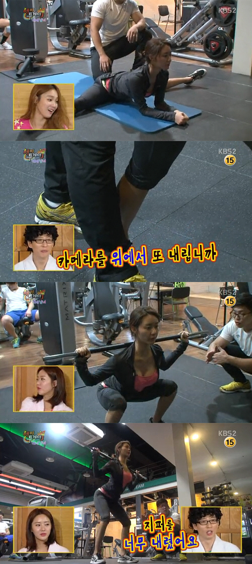 하체 운동과 근력 운동 등을 어려움 없이 소화하며 몸매 관리를 철저히 하는 한그루의 모습을 본 김지훈은 "저 트레이너가 되고 싶다"고 말했고, 박명수는 "난 짐볼이 되고 싶다"며 황당한 소감을 밝혀 폭소케 했다.