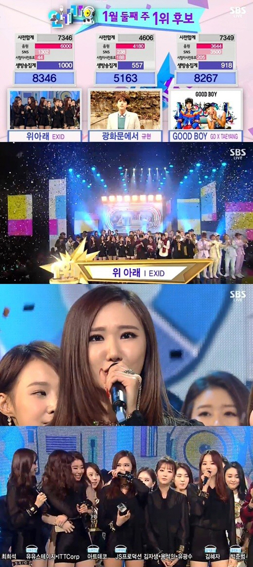 이날 EXID는 예상하지 못한 1위 호명에 당황한 모습이었다. 눈시울을 붉힌 멤버들은 "너무 감사하다. 우리를 보고 많은 분들이 힘내셨으면 좋겠다"고 수상소감을 밝혔다.