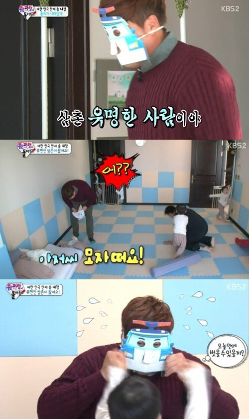 11일 방송된 KBS 2TV '해피선데이-슈퍼맨이 돌아왔다'에서는 삼둥이 집에 이웃사촌인 류현진이 '로보카 폴리' 가면을 쓰고 깜짝 방문했다.