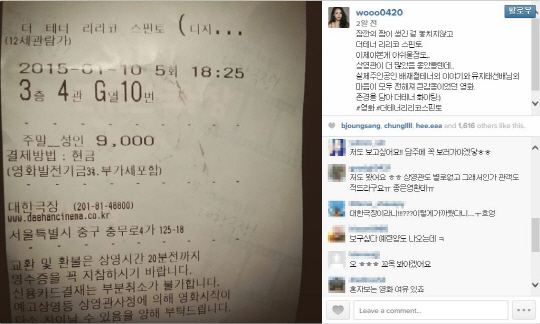 천우희는 지난 10일 대한극장에서 '더 테너 리리코 스핀토'(감독 김상만, 제작/공동배급 ㈜모인그룹, 배급 BoXoo 엔터테인먼트)를 관람한 뒤 영화 티켓을 자신의 인스타그램에 올렸다. 그는 "이제야 본 게 아쉬울 정도. 상영관이 더 많았음 좋았을 텐데"라며 "실제 주인공인 테너 배재철 테너의 이야기와 유지태 선배님의 마음이 모두 전해져 큰 감동이었던 영화"라고 소감을 밝혔다. "존경을 담아 파이팅"이라는 센스 있는 응원의 글을 남겼다.