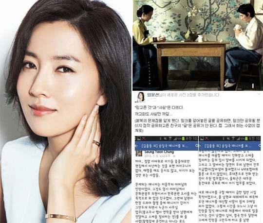 앞서 정승연 씨는 8일 자신의 페이스북에 남편 송일국 매니저 논란을 해명하는 글을 게재했고, 이는 임윤선 변호사의 SNS를 통해 전해졌다.