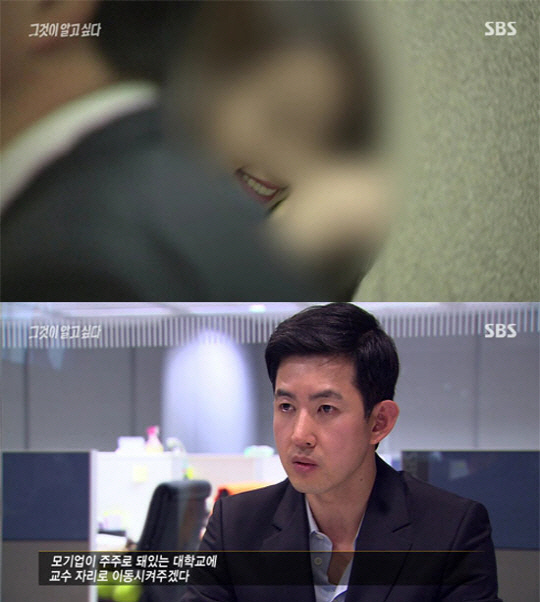 여승무원의 웃음을 본 박창진 사무장은 차마 말을 잇지 못했다. 그는 이내 "여승무원들은 그 상황에 대해서 본인이 직접 욕설도 듣고 파일로 맞기도 했지만 자긴 그런 적이 없다고 진술했다더라"며 "이 일이 잠잠해지고 나면 모 기업이 주주로 돼 있는 대학교에 교수 자리로 이동시켜주겠다는 제안을 받았다더라"고 주장했다.
