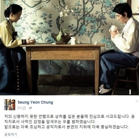 송일국 이어 정승연도 사과 "공직자로서 신중하지 못한 언행 죄송"