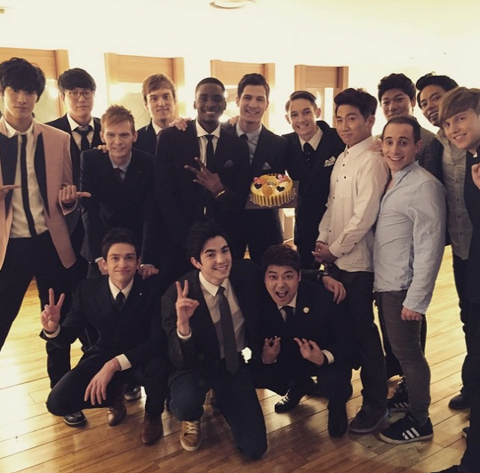 공개된 사진 속에는 케이크를 든 이탈리아 대표 알베르토 몬디를 중심으로 새 멤버 일리야, 블레어, 수잔을 비롯한 '