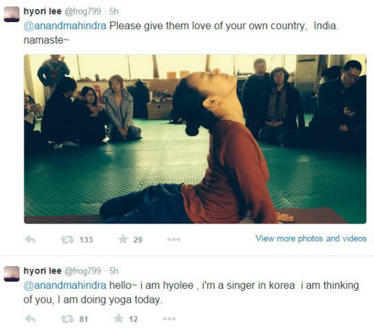 '티볼리 비키니' 발언 이효리, 쌍용자동차 최대 주주 인도 아난드 마힌드라 회장 공략한 요가 트위터