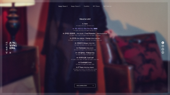14일 정용화는 공식 홈페이지(http://www.fncent.com/jungyonghwa/)를 통해 타이틀곡 '어느 멋진 날'과 선공개곡 '마일리지'를 포함, 첫 번째 솔로 앨범에 수록될 10곡의 트랙 리스트를 공개했다. 앞서 공개된 YDG·버벌진트·윤도현·임준걸 등 4명의 국내외 실력파 가수와 함께한 '마일리지' '원기옥' '추억은 잔인하게...' 'checkmate'는 물론 노라 존스(Norah Jones)와 함께 앨범 '뉴욕 시티(New York City)'를 발매하며 화제를 모은 미국 기타리스트이자 블루스의 거장인 피터 말릭(Peter Malick)과 공동작업 한 '27 Years'도 포함됐다.