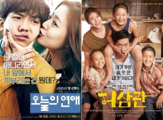첫 스크린 데뷔에 나선 이승기와 문채원의 '오늘의 연애'와 하정우가 감독 주연을 맡고 동갑내기 하지원과 부부호흡을 맞춘 '허삼관'은 14일 같은 날 개봉해 맞대결을 펼치고 있다.