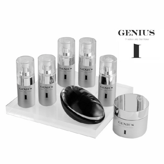 유명 피부과 전문의 함익병 원장은 지난 9일 심혈을 기울여 개발한 '지니어스1 1st 에디션'을 현대홈쇼핑에 런칭했다. 새로 선보인 화장품은 30대 중반에서 40대 중반의 여성들에게 특별한 탄력 관리를 가능하게 하여 본격적인 주름이 생기기 전 사전 노화 방지 프로그램을 제공하는 상품 패키지. 탄력 앰플 5병, 갈바닉&진동 기기 1개, 수분 저장고 크림 1개로 구성돼 있으며 앰플을 얼굴에 도포하고 기기를 사용하여 마사지해 탄력 성분들을 피부 깊숙이 침투 시킨 뒤 수분 저장고 크림을 발라 수분 보호막을 형성시킴으로써 침투된 탄력 성분들을 수분으로 보호하는 원리다.