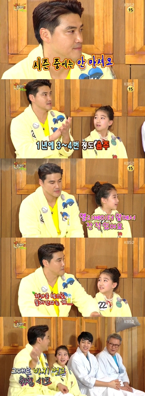이어 그는 "집에 들어와 자는데 덥더라. 차가운 방으로 들어간다는 게 엘리베이터 바닥이 시원해서 거기서 잤다. 아내가 잡아끌고 들어왔는데 화리가 그걸 봤나보다"라고 사건의 전말을 털어놔 폭소를 자아냈다.