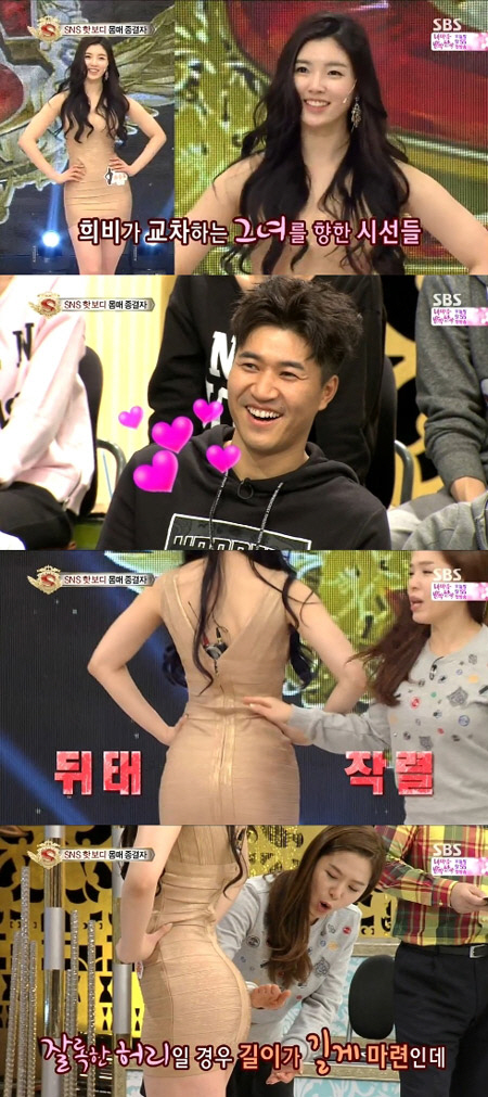 이에 MC 강호동은 "신의 손으로 빚어진 듯한 완벽한 몸매"라고 극찬을 보냈다. <스포츠조선닷컴>
