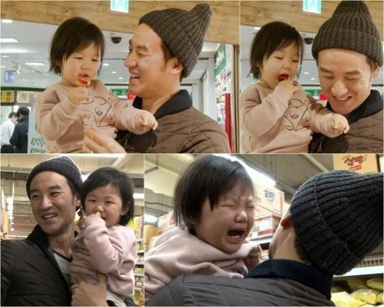 하지만 엄태웅 부녀의 고난은 '허당 아빠' 엄태웅의 손 끝에서 시작됐다. 엄태웅은 품에 안고 있던 지온을 의자에 앉히려 한 순간 갑자기 지온이 마트 한복판에서 눈물을 쏟아낸 것. 이에 엄태웅은 순간적인 당황함을 감추지 못하며 연신 식은땀을 뻘뻘 흘려야 했다.