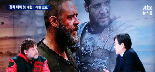 영화 '워터 디바이너'를 통해 감독으로 데뷔한 러셀 크로우는 20일 방송된 JTBC '뉴스룸'에서 앵커 손석희와 인터뷰를 가졌다.