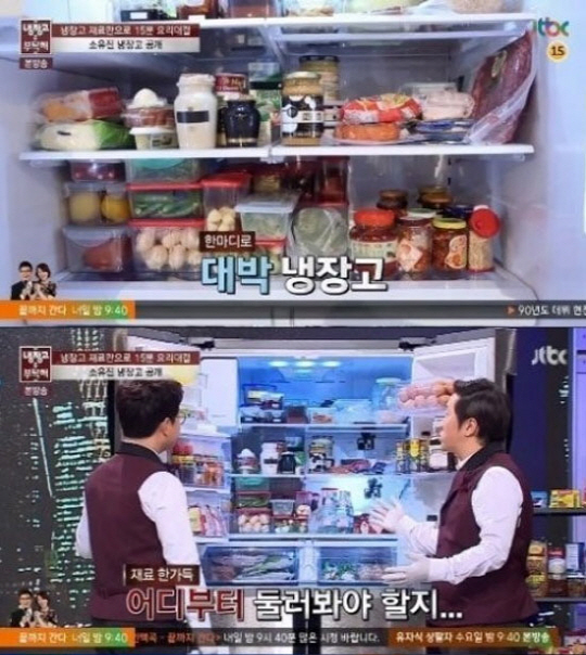 초대형 냉장고 안에는 4칸으로 나뉘어져 고기, 밑반찬, 각종 향신료, 양념 등 국내의 향토 음식과 해외 희귀 식재료들이 자리 잡고 있어 셰프들의 눈길을 사로 잡았다.