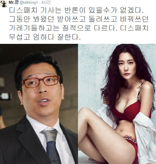 이후 해당 기사를 접한 강병규는 자신의 트위터를 통해 "'디스패치' 기사는 반론이 있을 수가 없겠다"며 "그동안 봐왔던 받아쓰고 돌려쓰고 바꿔 쓰던 기레기들하고는 질적으로 다르다. '디스패치' 무섭고 엄하다 잘한다"라는 글을 게재했다.