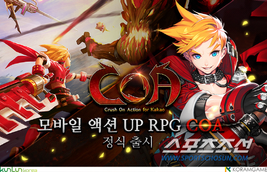 쿤룬코리아는 모바일 3D 액션 UP RPG 'Crush On Action for Kakao'(이하 COA)를 카카오 게임하기에 20일 출시했다.