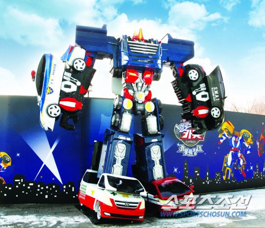 서울 한남동 블루스퀘어에 4m 높이의 초대형 카봇 '펜타스톰' 조형물이 등장했다.
