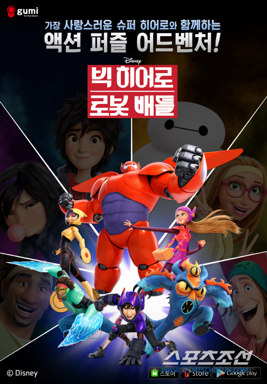 디즈니 애니메이션 영화 '빅 히어로'를 모티브로 개발된 모바일게임 '빅 히어로:로봇 배틀'은 천재 소년 히로와 그가 만든 빅 히어로 로봇들이 위기에 처한 도시를 구하기 위해 악당 로봇에 맞서 싸운다는 내용을 담은 에픽 퍼즐게임이다.