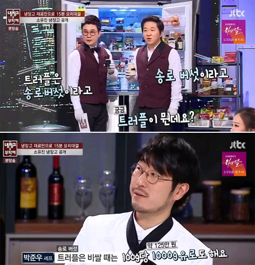 특히 냉장고 속에는 세계 3대 진미 중 하나인 트러플(송로버섯)이 들어간 머스타드 소스가 있어 셰프들에게 놀라움을 안겼다. 트러플에 대해 셰프들은 "송로버섯은 무게로 따지면 금보다 비싸다"며 "비쌀 때는 100g 당 1000유로(약 125만 원)까지 나간다"고 설명했다. 이후 MC 및 셰프들은 너도 나도 할것 없이 트러플 머스타트의 맛을 봤고 "오묘한 향이 입안에 남는다"며 감탄했다.