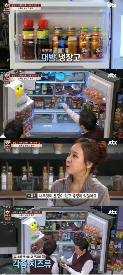 이날 방송에서 소유진은 셰프 남편 백종원과 함께 사는 신혼집의 냉장고를 공개해 이목을 집중시켰다. 냉장고에는 초호화 식재료 등이 차곡차곡 담겨 있었으며, 냉동실에는 소고기, 돼지고기, 양고기 칸 등이 따로 있는 등 고기도 종류별, 부위별로 완비돼 있어 감탄을 자아냈다.