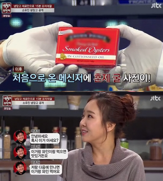 소유진의 식재료는 냉장고 안에 뿐만 아니라 실온에도 풍성했다. 특히 실온 재료 중 훈제굴을 본 MC들은 강한 호기심을 보였다.