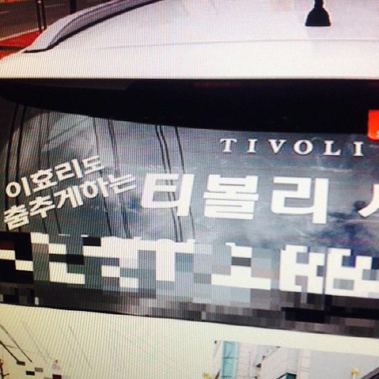 이효리를 흥분하게 만든 것은 한 장의 사진 때문. 사진에는 "이효리도 춤추게 하는 티볼리"라는 문구가 자동차 유리에 적혀있다.