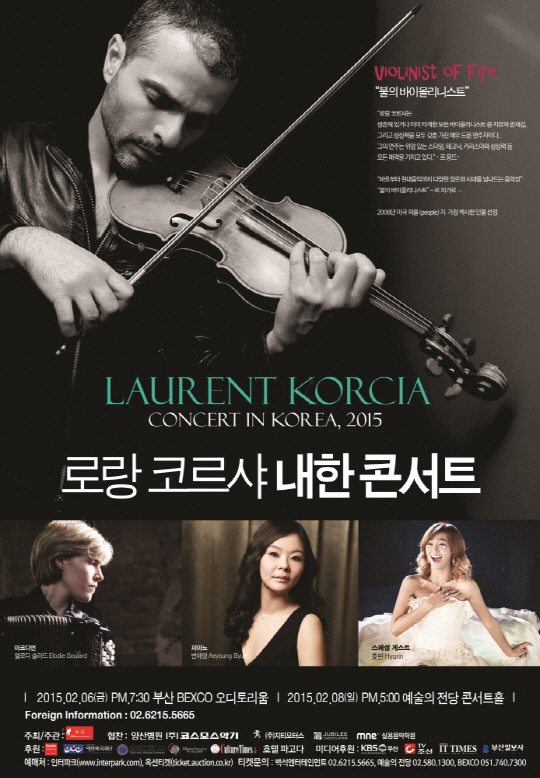 현존하는 프랑스 최고의 바이올리니스트 로랑 코르샤와 한국을 대표하는 섹시디바 효린이 2월 6일 부산(벡스코 오디토리움)과 8일 서울(예술의전당 콘서트홀)에서 개최되는 '2015, 로랑 코르샤 내한콘서트'에서 파격적인 콜라보레이션을 선보인다.