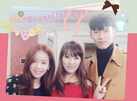 공개된 사진 속에는 하지영이 현빈과 한지민의 사이에서 브이 포즈를 취하고 있는 모습이다.