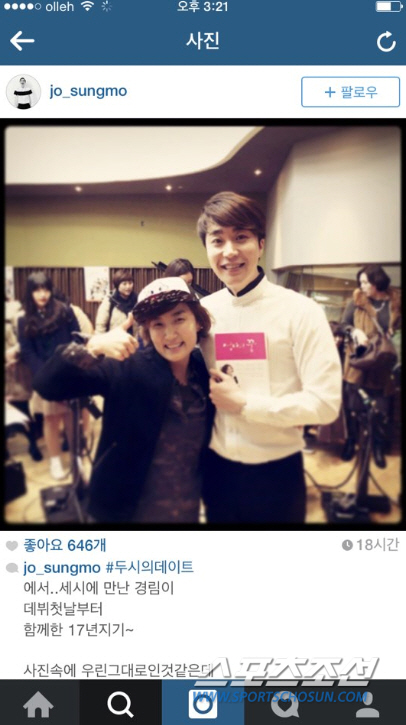 조성모는 21일 자신의 SNS를 통해 박경림과 즐겁게 찍은 사진을 공개했다. 조성모는 "'두시의 데이트'에서.. 세 시에 만난 경림이"라며 "데뷔 첫 날부터 함께 한 17년 지기~"라고 글을 올렸다. 이어 "사진 속에 우린 그대로 인 것 같은데, 벌써 시간이 이렇게 흘렀다"며 여운을 남겼다. 거기에 "엄마가 될 순 없지만"이라며 박경림이 최근 선보인 세상의 엄마들의 꿈을 응원하는 에세이 집 '엄마의 꿈:엄마도 꿈이 있단다'를 소개하는 의리를 보였다.
