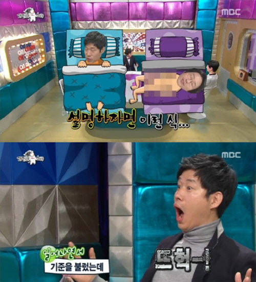 이에 MC 김구라는 "퍼포먼스 아니에요?"라고 의심의 눈초리를 보냈고, 규현은 "나체주의냐?"고 물었다.