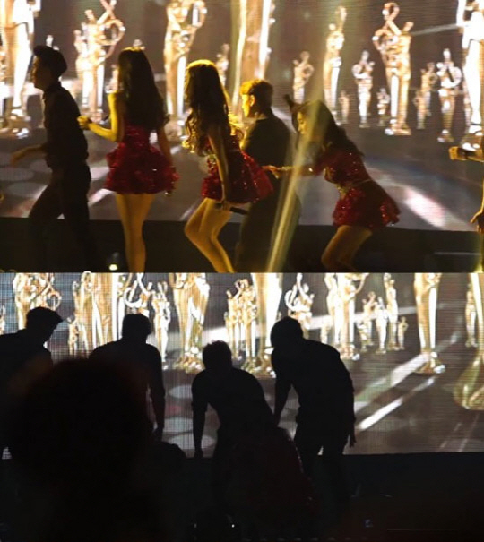 그러나 이 과정에서 서현이 돌아선 순간 한 차례 휘청거렸고, 이어 태연이 무대 아래로 내려가던 중 추락사고를 당했다 .놀란 멤버들과 댄서들은 추락한 태연의 상태를 살피고 사태를 수습했다. 당시 상황은 팬들이 직접 촬영한 동영상에 그대로 포착됐다.