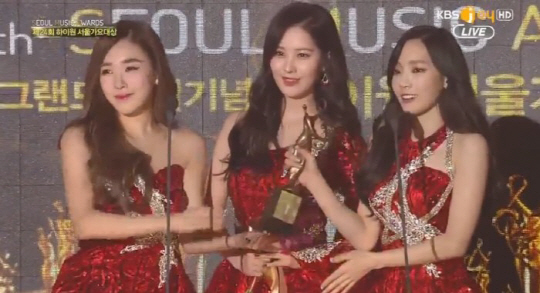 걸그룹 소녀시대의 유닛 그룹 태티서의 태연이 '서울가요대상' 무대에서 떨어지는 사고를 당했다.