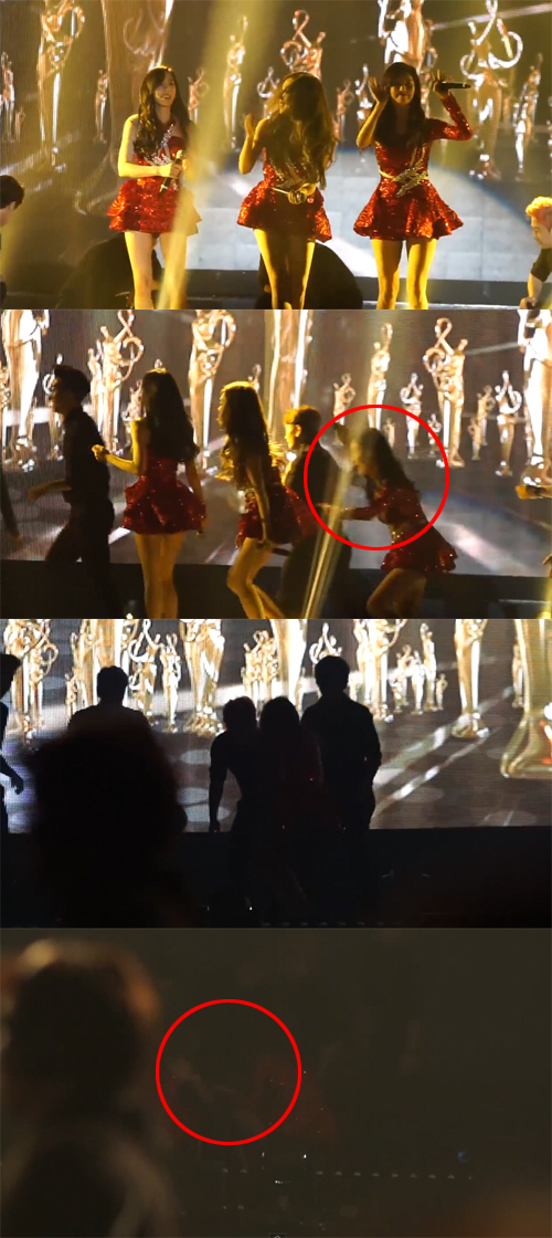 이어 "이를 발견한 태티서 멤버와 댄서들이 태연을 무대로 다시 끌어 올렸고 '행사가 지연돼 서둘러 진행하는 과정에서 실수가 생긴 것'이 무대팀의 설명이다"고 덧붙였다.
