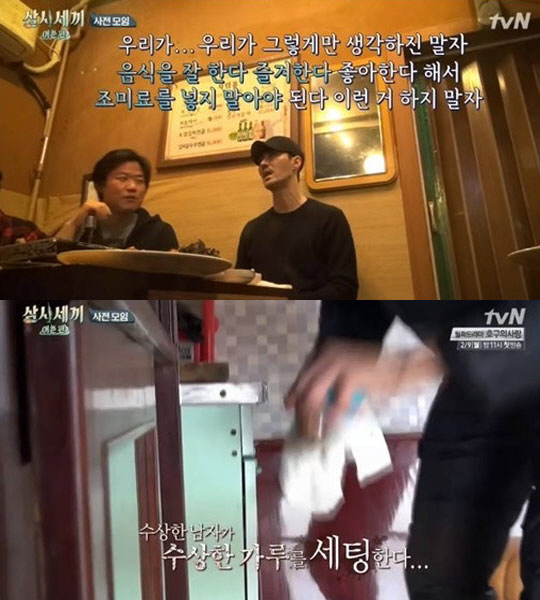 차승원은 23일 방송된 tvN '삼시세끼 어촌편(이하 삼시세끼)'의 사전 몰래카메라에서 요리 이야기가 나오자 대뜸 조미료를 언급했다.