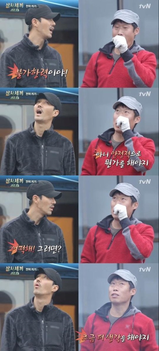 유해진은 "뭔가를 안정적으로 해야지. 좀더 생각을 해봐"라고 지적했지만, 차승원이 재차 "이게 최선이야. 어떻게 해!"라고 답하자 슬그머니 화제를 돌려 갈등을 피하는 지혜를 선보였다.