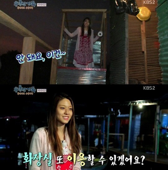 걸그룹 AOA 멤버 설현이 수상가옥 화장실 체험에 놀라움을 감추지 못했다.
